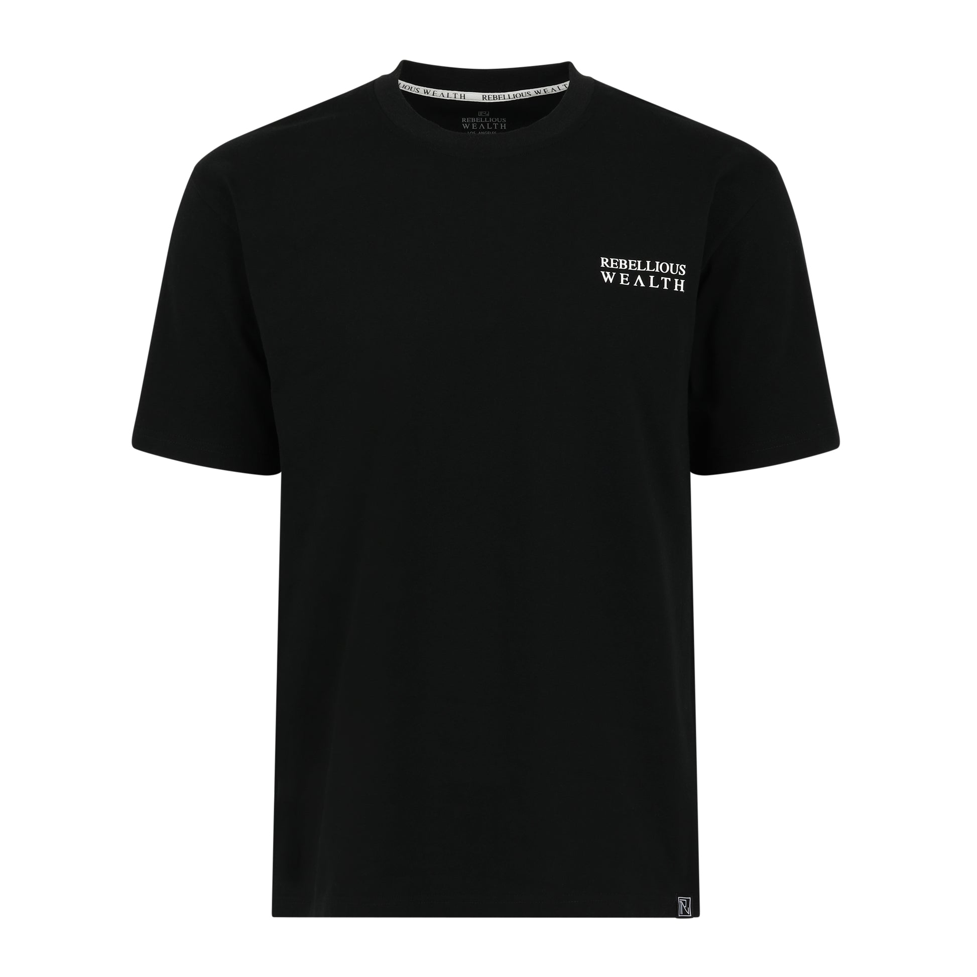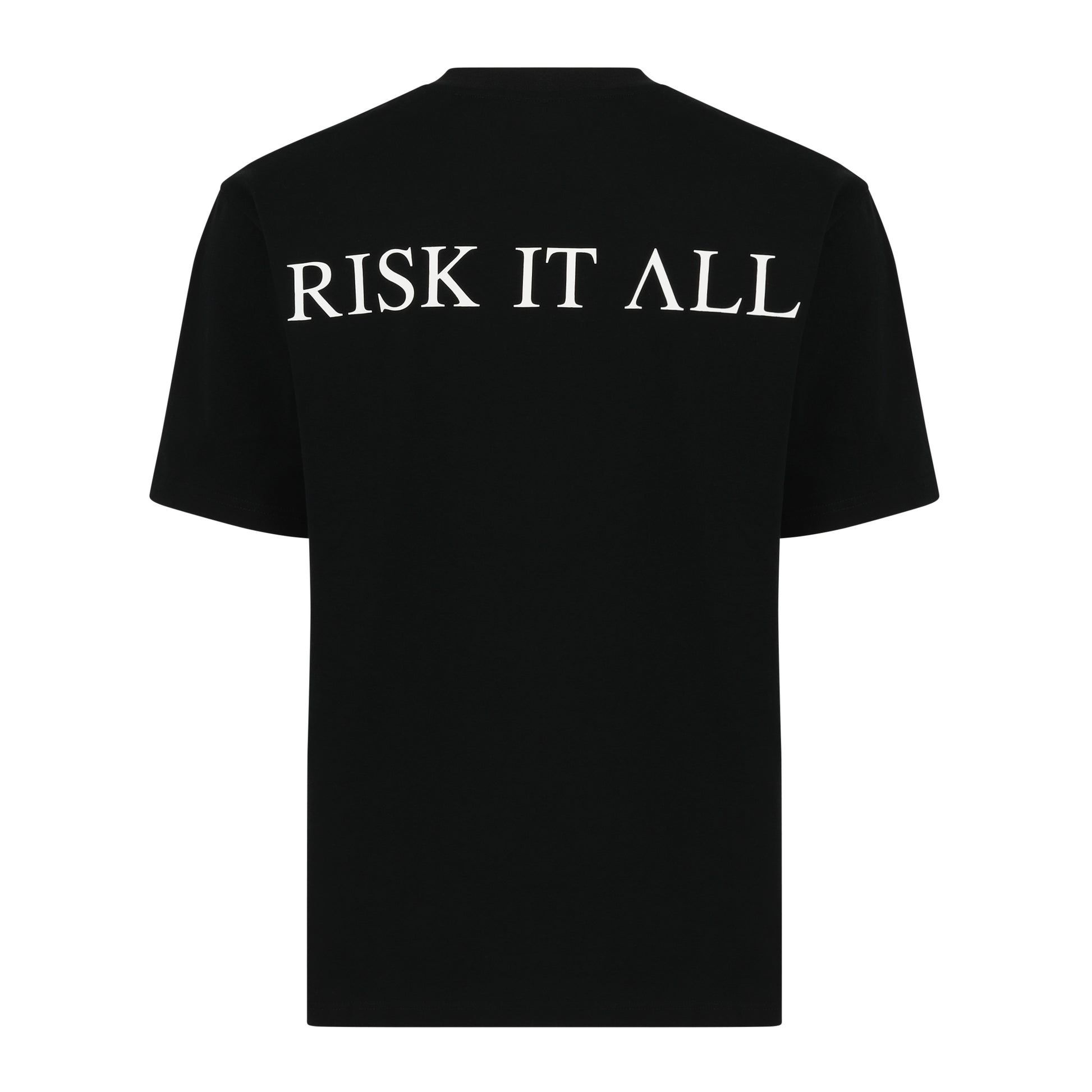 The RWLS 107: Risk It All In The Rebellious Wealth Lifestyle Premium Heavyweight Black T-shirt.